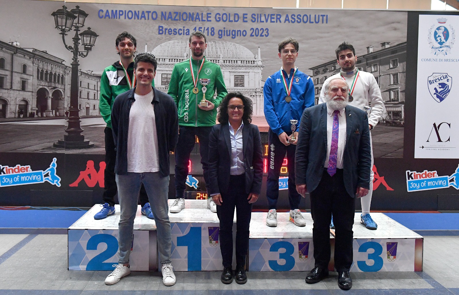La prima gara di giornata è stata conquistata da Fausto Buratti del Circolo della Spada Liguria Genova che si è aggiudicato la prova di spada maschile silver. Il classe ’98 ha superato in un’emozionante finale Alessandro Fedeli del Circolo della Spada Mangiarotti Milano con il punteggio di 15-14. L’ultima stoccata ha permesso al ligure di conquistare il primo titolo nazionale silver della scherma italiana. Nella semifinale il vincitore aveva battuto nel match di semifinale Lorenzo Cherubini della UISP Scherma Orvieto (poi) per 15-9. Terza posizione anche per Filippo Checco dell’Associazione Schermistica Pro Vercelli che è stato superato da Alessandro Fedeli 15-9 nella seconda semifinale.