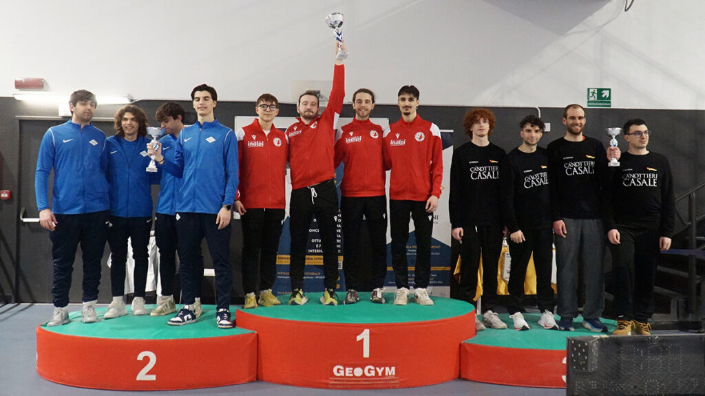 Nella foto il podio della spada maschile assoluti a squadre